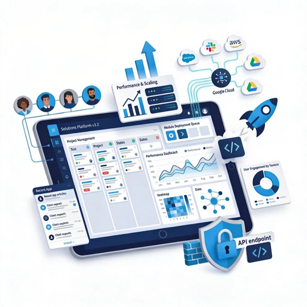 Using modern technologies such as React, Angular, Node.js, and cloud platforms, we develop secure and high-performing web applications that adapt seamlessly to your evolving business requirements. Whether you need an enterprise solution, customer portal, or a SaaS platform, we deliver applications that provide real value.