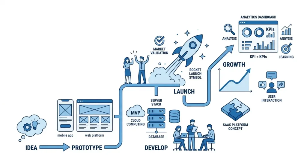 We work closely with entrepreneurs and startups to transform innovative ideas into functional digital products. Whether you are launching a mobile app, web platform, or SaaS product, our MVP development approach ensures a fast, cost-effective, and market-ready solution that supports your startup’s growth from day one.